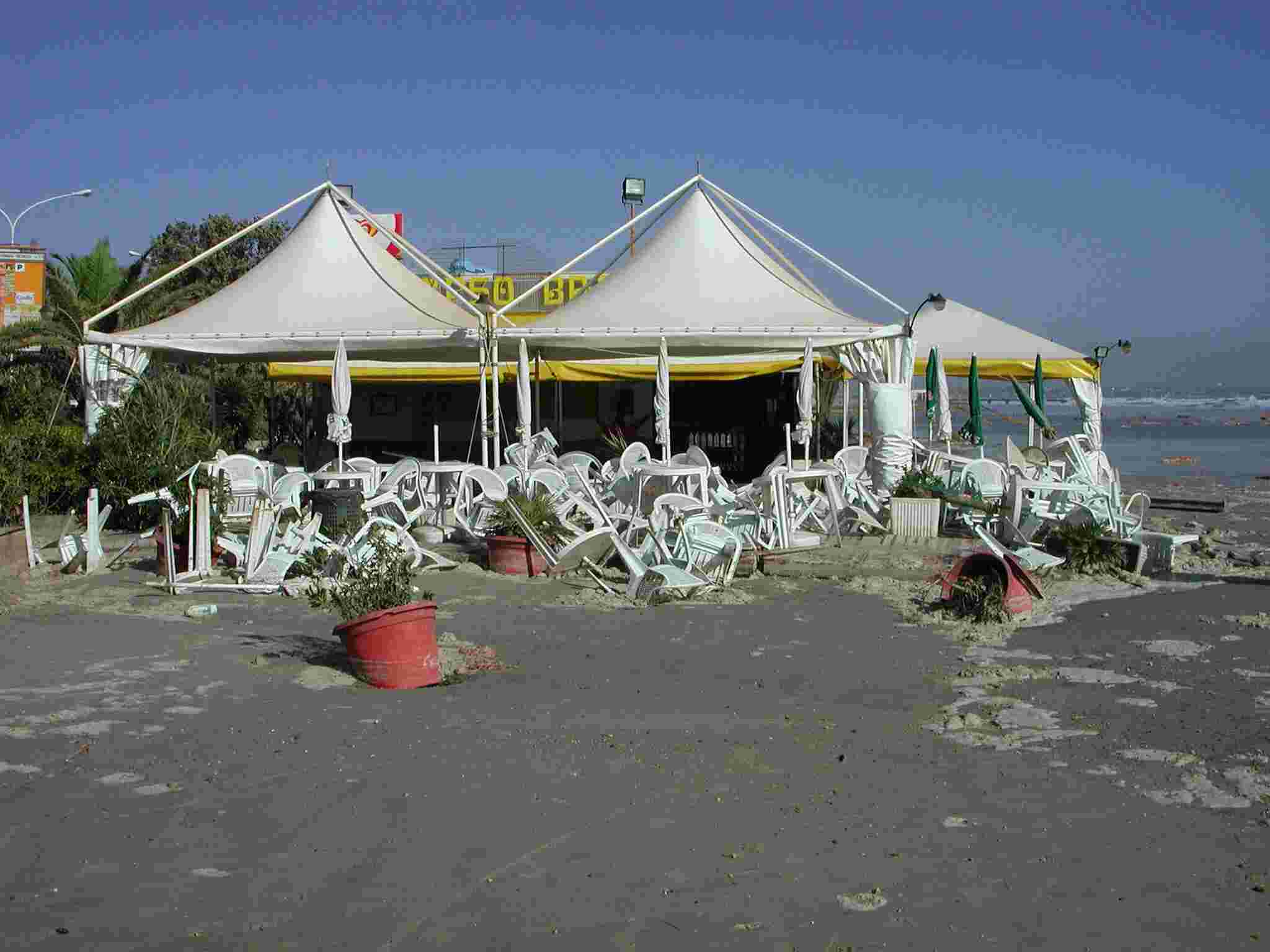 Ecco gli evidenti danni ai chioschi sulla spiaggia